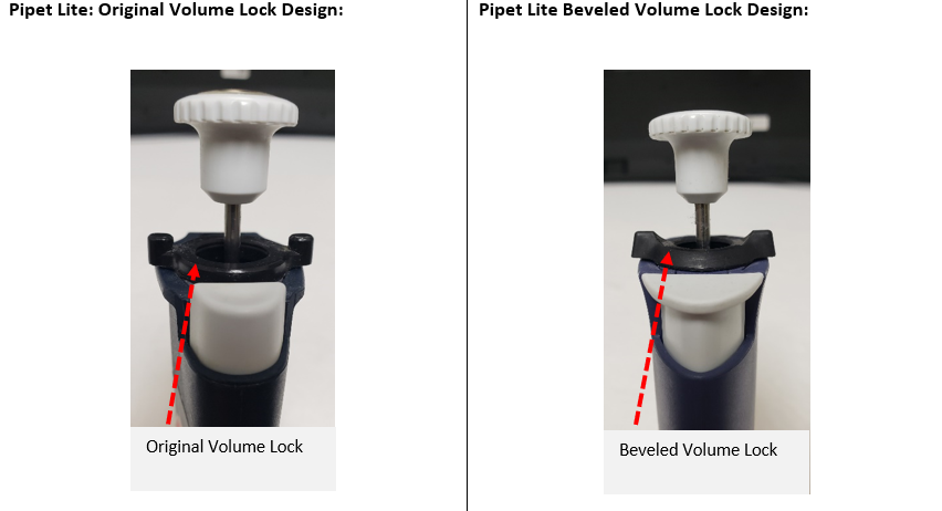 Pipet-Lite original volume lock vs beveled volume lock