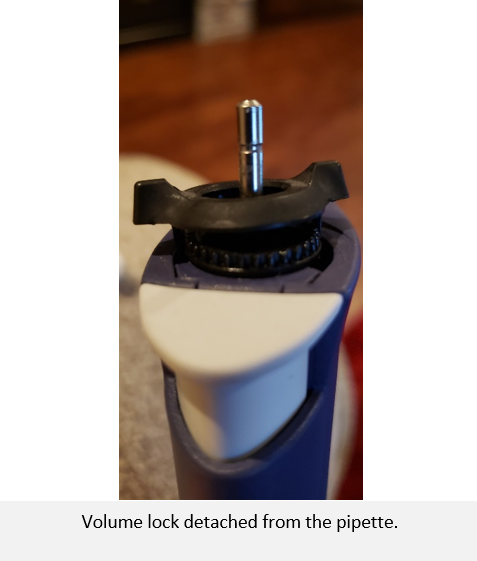 Volume lock detached from the pipette