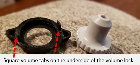 Step 4:  Rotate the black colored volume lock base NO MORE THAN 1/8 of a turn clockwise to tighten a loose volume lock.