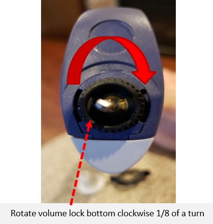 Then rotate the volume lock to the 3 o’clock and 9 o’clock position and re-install plunger button.
