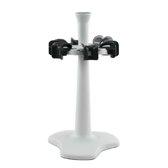 The stand can be modified for use with the new Transferpette pro pipettes by removing one of the provided Transferpette S rack mounts, and replacing it with the Transferpette pro rack mount provided with the Transferpette pro pipettes. The Transferpette pro rack mount is also sold separately, BT 704881.
